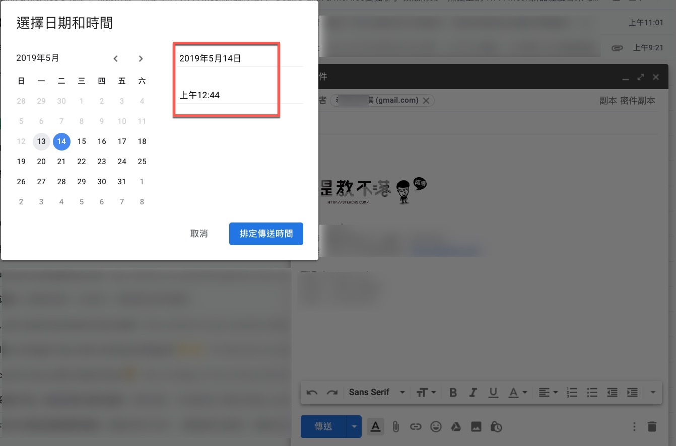 這時就可以任意的選擇目前時間往後的任意時間點,再按下排定傳送時間就搞定了。