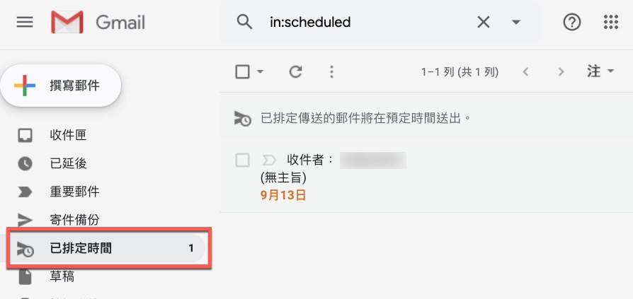 如果想管理排定的信件,可以在左側看到現在會多一個「已排定時間」的分類,在這裡管理信件即可。