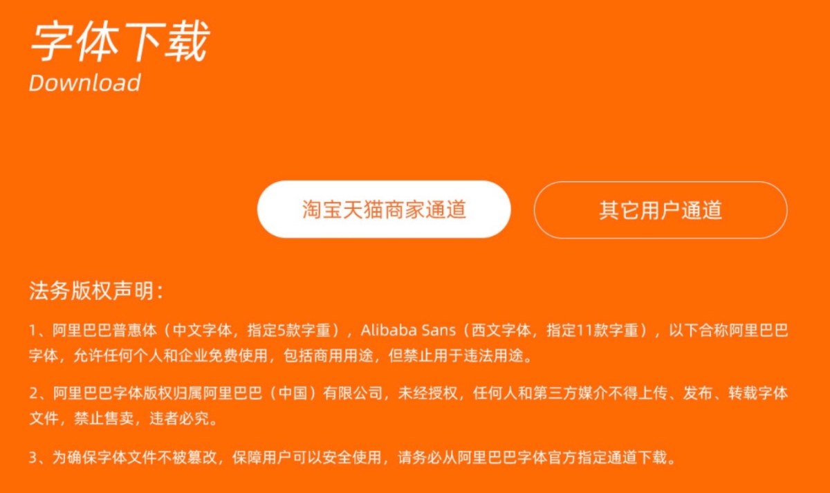 字體下載的部份,只要在頁面往下拉就可以找到,不論哪一個通道都要先登入淘寶帳號,登入後再點擊其他用戶通道就可以直接下載了。