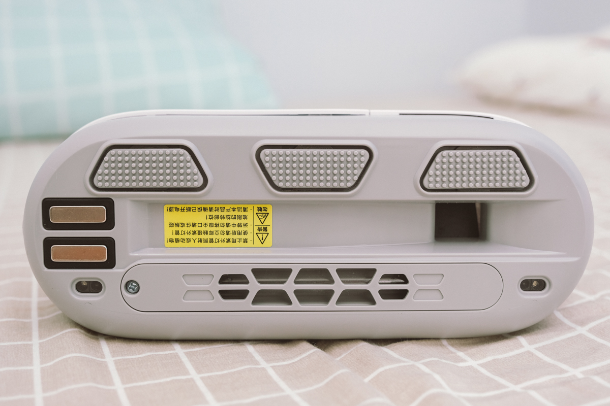 這台運作的方式是,先透過最上方那三個梯形區域進行震動拍打(11,000 次/分),然後再從中間吸進去,最後一道是紫外線燈殺菌,依官方說法可以去除 99% 的細菌,更加的減少過敏原。