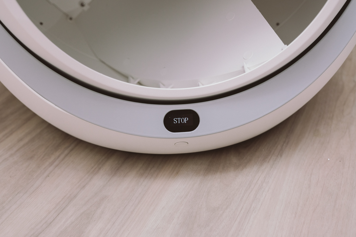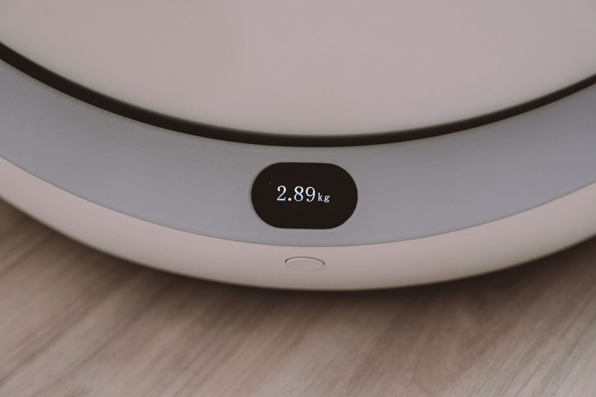 下方有一個狀態顯示螢幕,可以知道貓進去的重量、運轉狀態,原則上這個重量算是有準,不過前提是你家的地板要是硬的,地板也不能不平整,否則會失去測量準度。