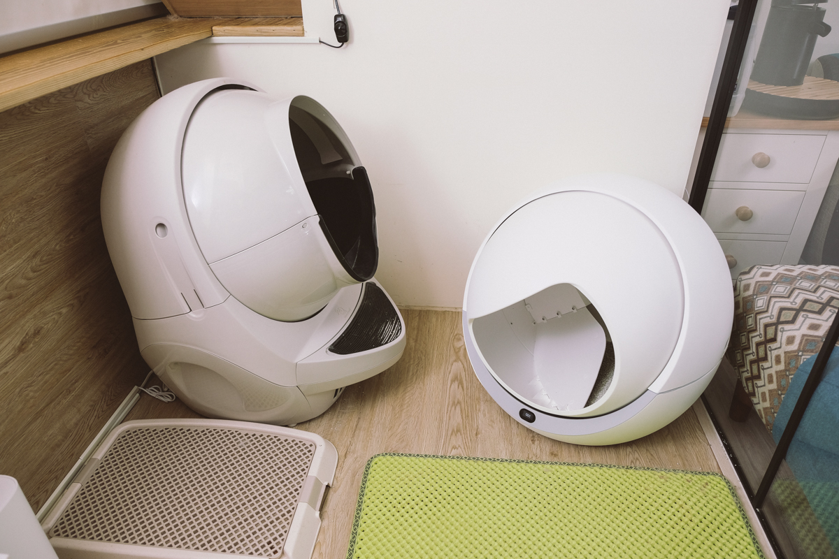 給大家看一下喵星人太空艙(左)和喵星球全自動貓砂盆(右)的大小對比,二台差很多吧。