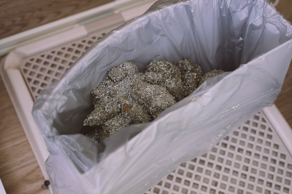 以我家二隻貓的砂量,估計是 4~5 天需要換一次垃圾袋,另外這台有個小缺點,集砂桶滿的話不會停止運轉也沒有通知,所以你要自己定期的檢查更換,太空艙那台是有滿砂停止的機制,而且前方號誌燈會亮紅燈,就知道該換袋子,我覺得這是二台的最大差異處。