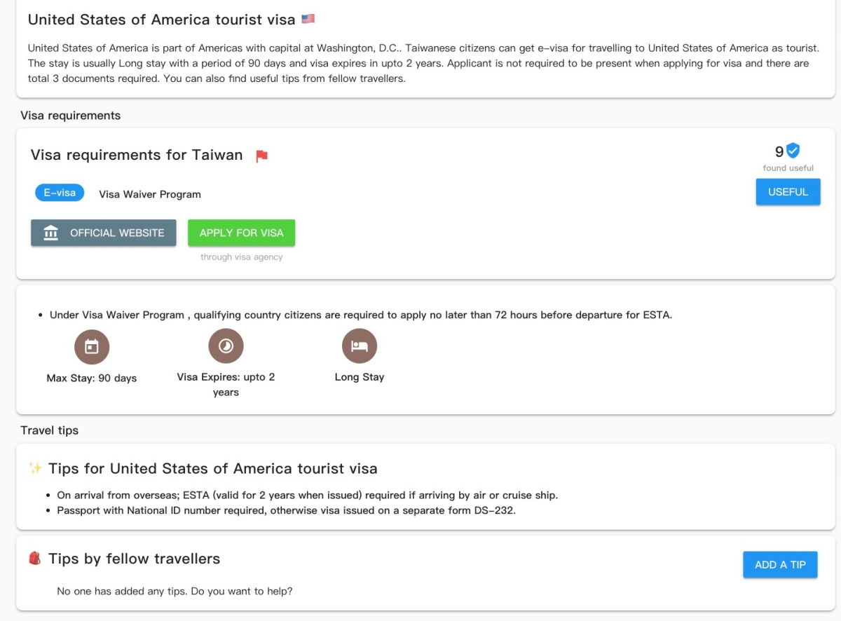 像美國就是需要電子簽證,旅遊的話就是 90 天期限,每次申請後,二年可以不用重新申請,這些都有詳細記載。