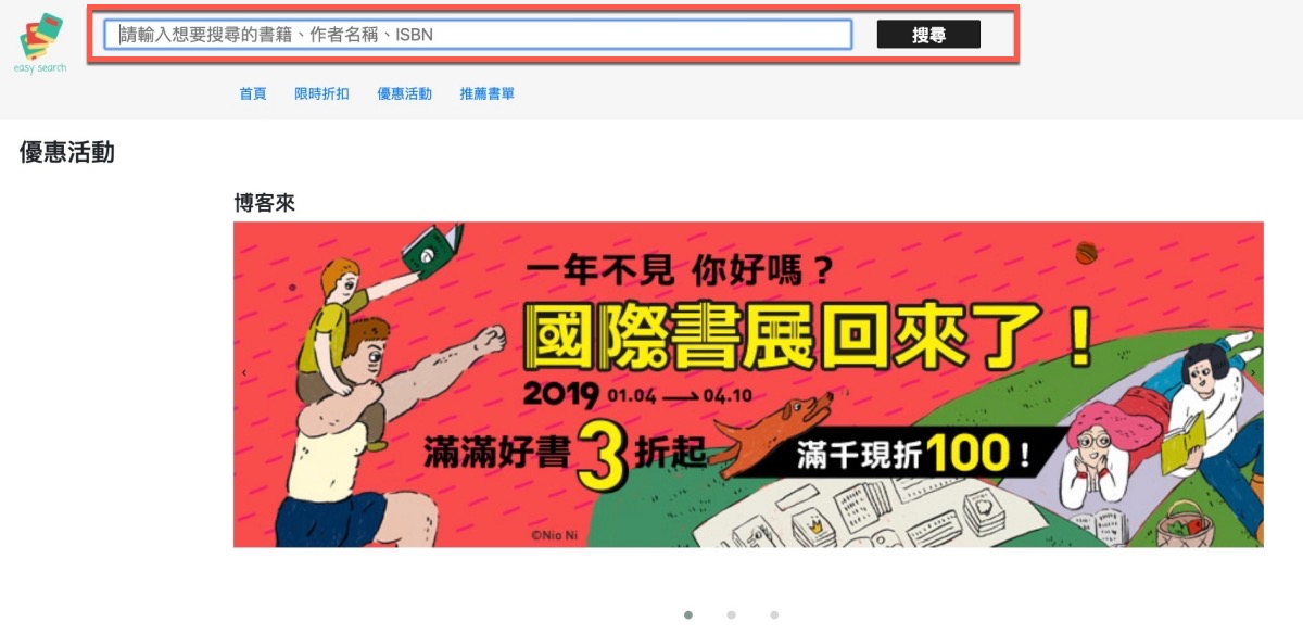 使用方式很簡單,進到首頁後,直接搜尋想要買的書籍名稱或是像作者、ISBN(國際標準書號)也可以。