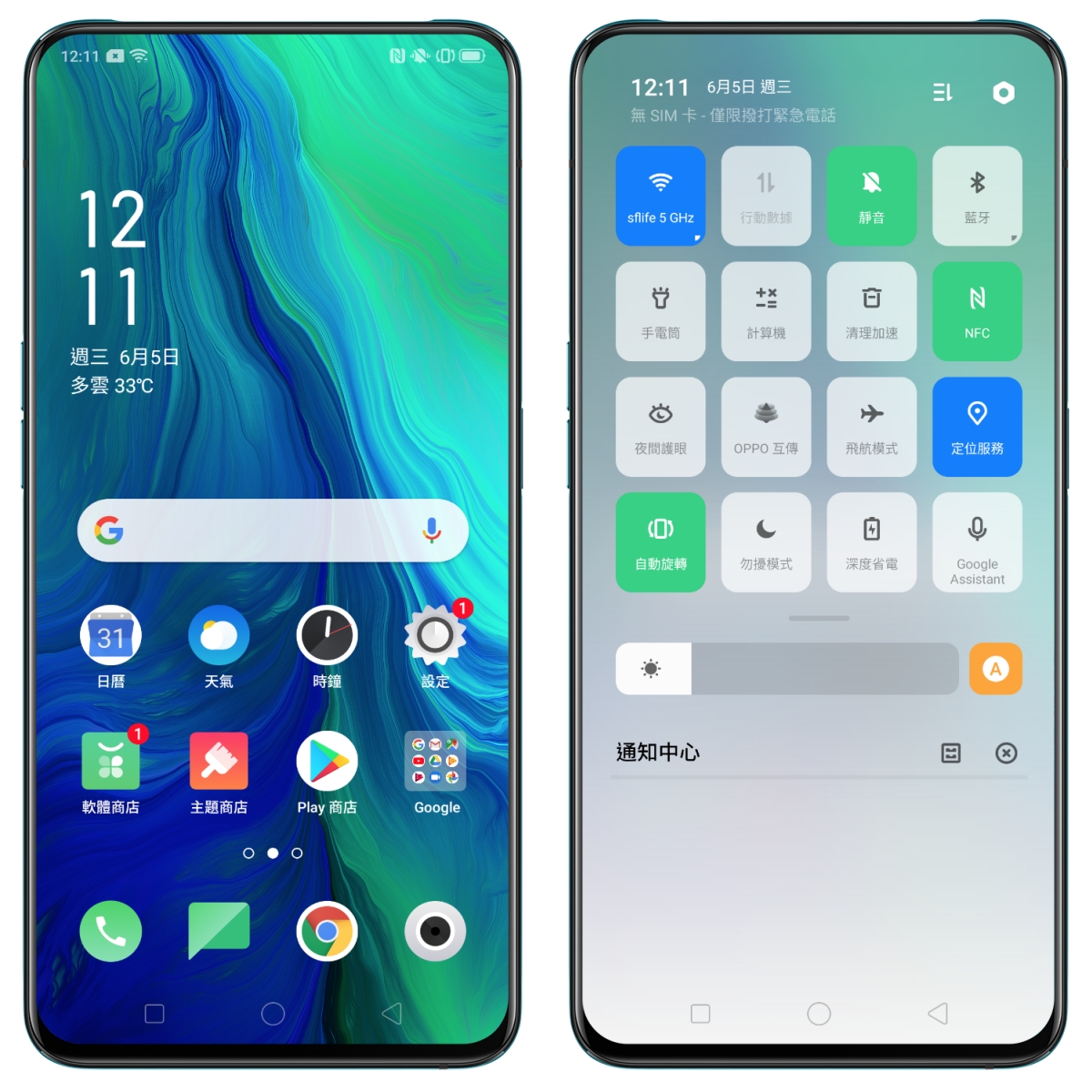 OPPO Reno 不論是標準版或 10 倍變焦版,推出的顏色都是極夜黑與霧海綠,阿湯所拍攝的這一款為霧海綠,我自己私心也是推薦霧海綠,機背真的太美了,採用 3D 弧面設計。