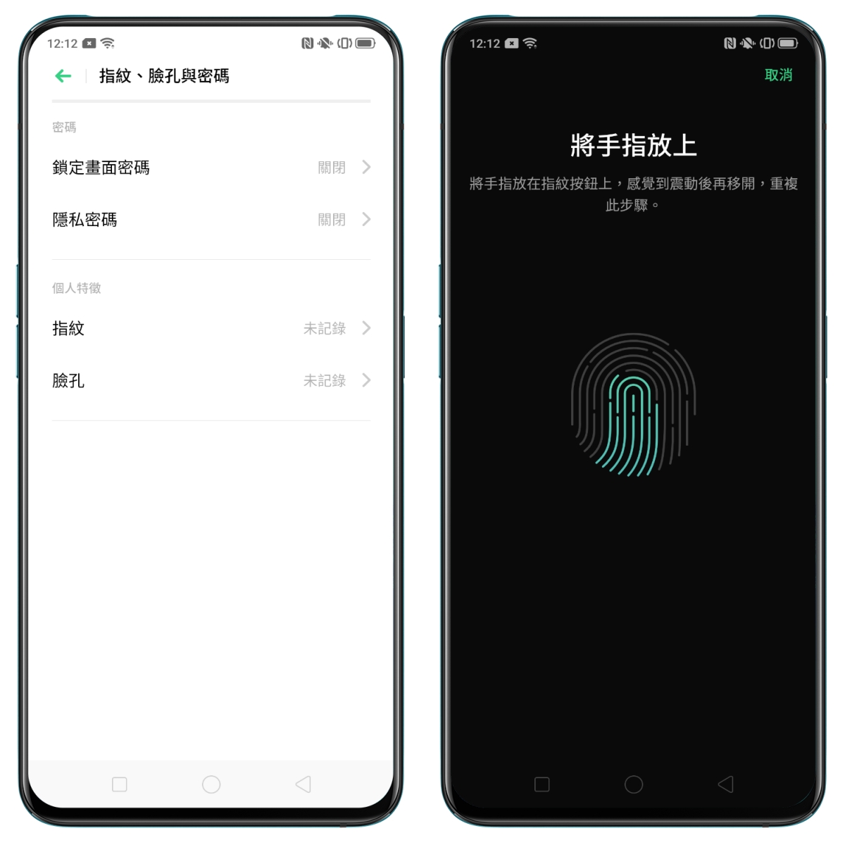 安全性的部份支援指紋、臉部解鎖以及傳統的密碼。
