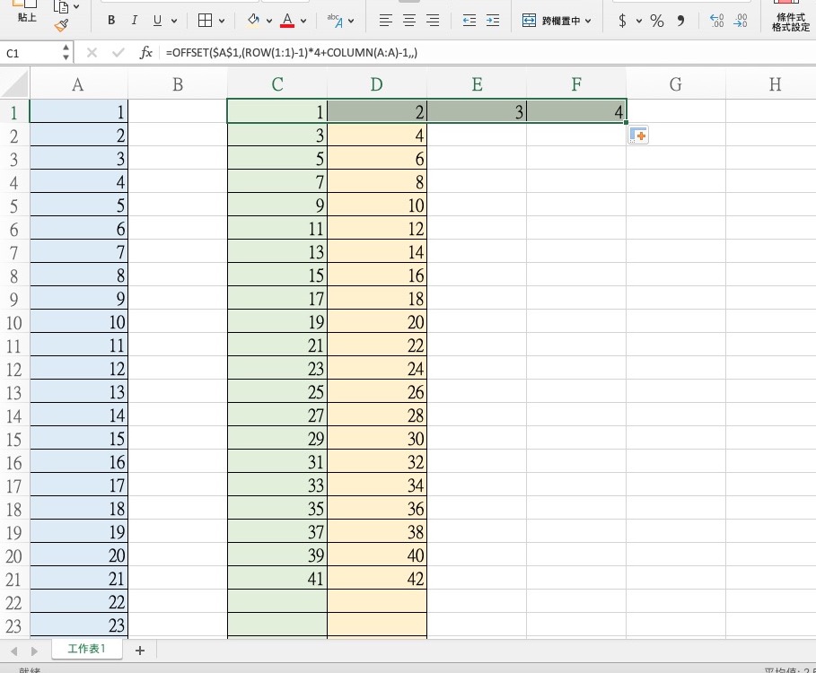Excel 單欄變多欄的方法