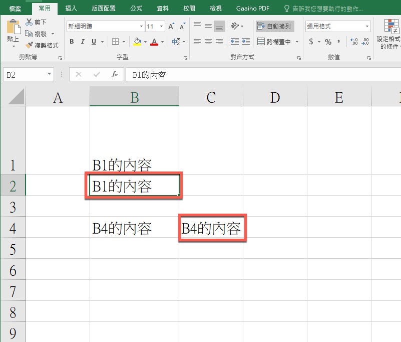 比如選擇 B2 的欄位後,按下 CTRL + D,就會去複製上方的內容,以 C4 欄位來說,按下 CTRL + R 就會去複製左側的內容。