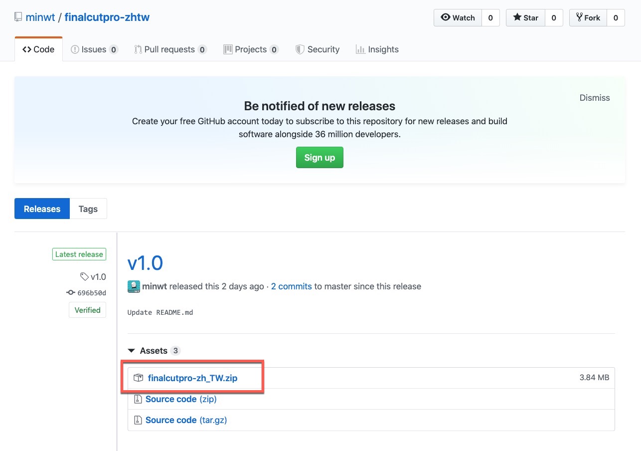 進入後點擊 finalcutpro-zh_TW.zip 下載,目前該語系檔可以運用在 Final Cut Pro 10.4.x 的版本(理論上 10.4 的都通用)。
