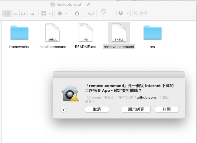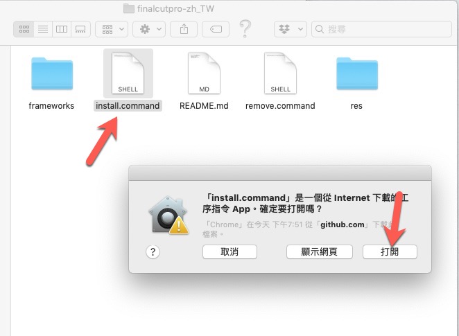 將檔案解壓縮後,雙擊裡面的「install.command」,然後會出現確定是否要打開的提醒,就打開吧。