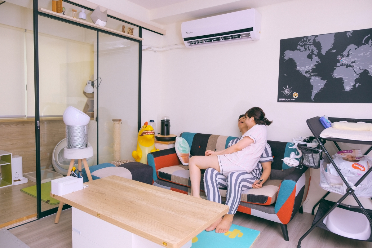 湯包睡著後就是我們的 Party Time 啦,勞累了一整天,既是工作還要照顧湯包,客廳是我們的最佳休息之處,所以我們才會決定將客廳的冷氣先行更換,繼續 365 天全年無休的運轉下去。