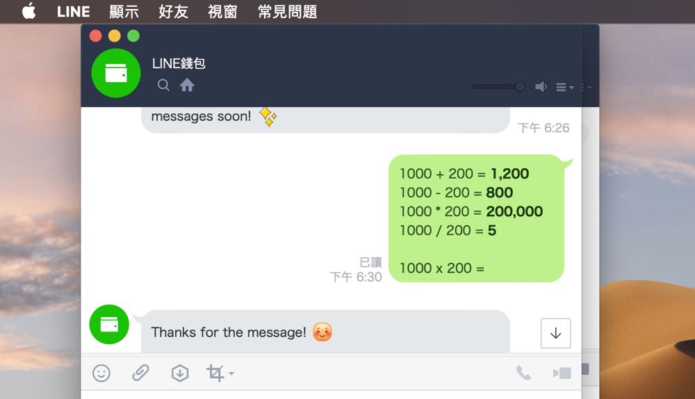 桌機版的 LINE 真的越來越聰明!除了會把文字變粗變斜、幫忙翻譯以外,現在又帶來 5.17.1 的更新,能夠直接幫忙算數學,不管是單純的 +、-、*、/ 還是一長串的乘除後加減、括號內先行的運算,現在 LINE 桌機 5.17.1 版通通都能輕鬆的完成,至於要怎麼玩?也讓我們一起來看看!
