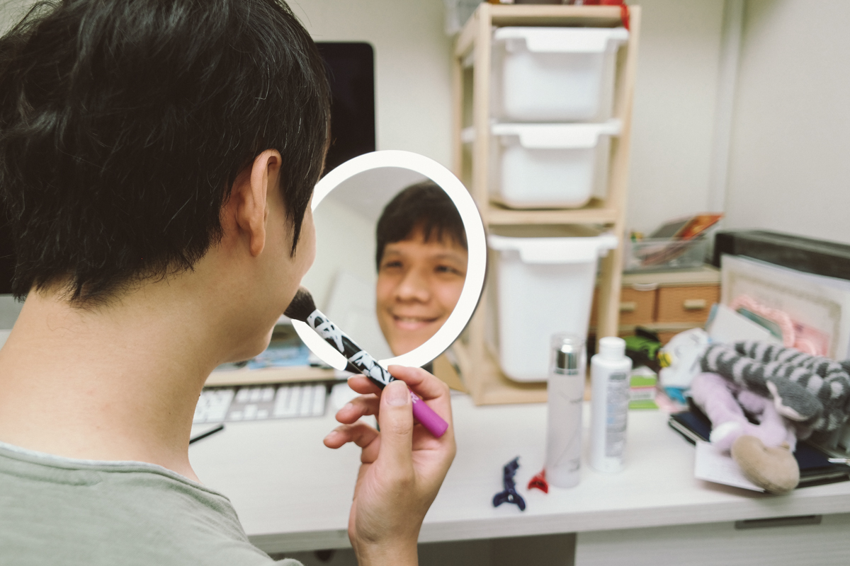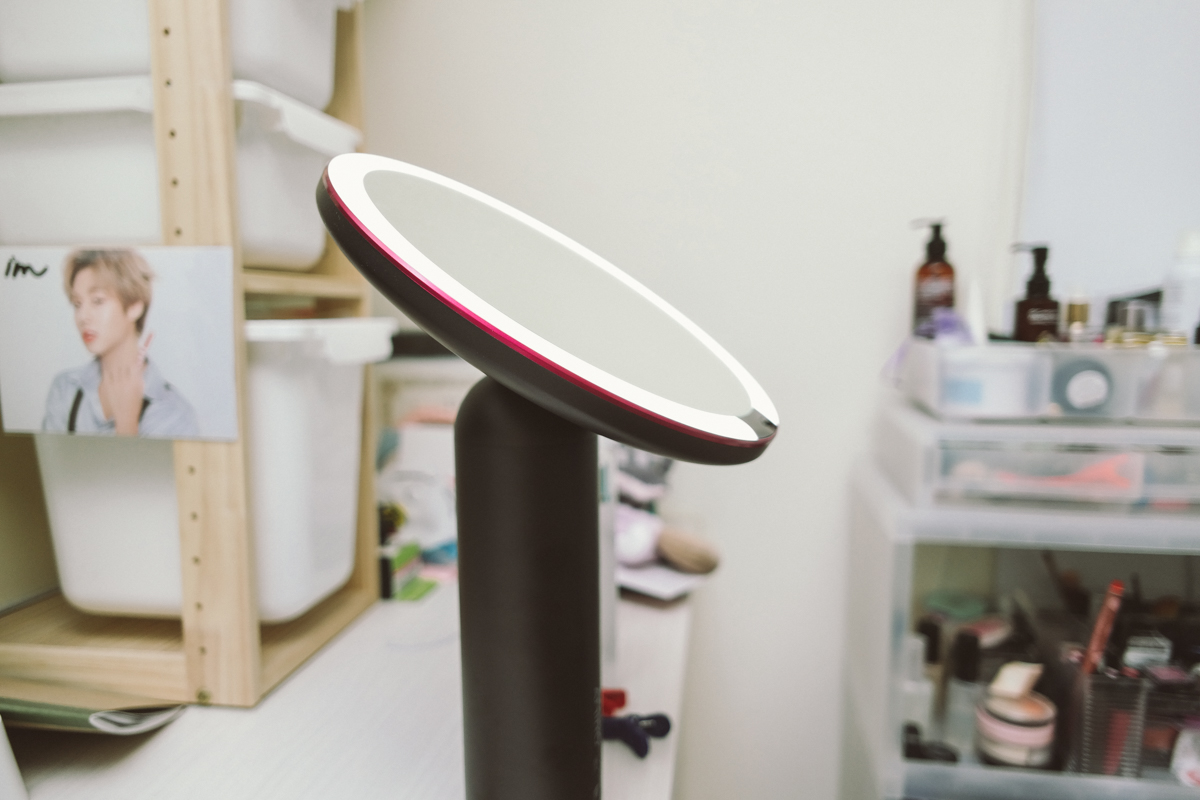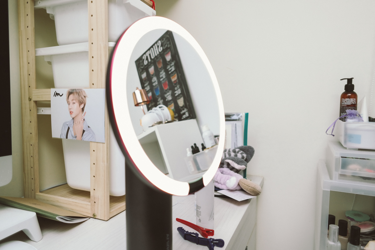 最後就讓大家傷傷眼睛,由阿湯示範化妝給大家看(誤),總之我覺得這鏡子很方便,雖然有很多鏡子也都有 LED 燈,但我覺得可以選擇不同色溫的燈和亮度還是比較實用一些。