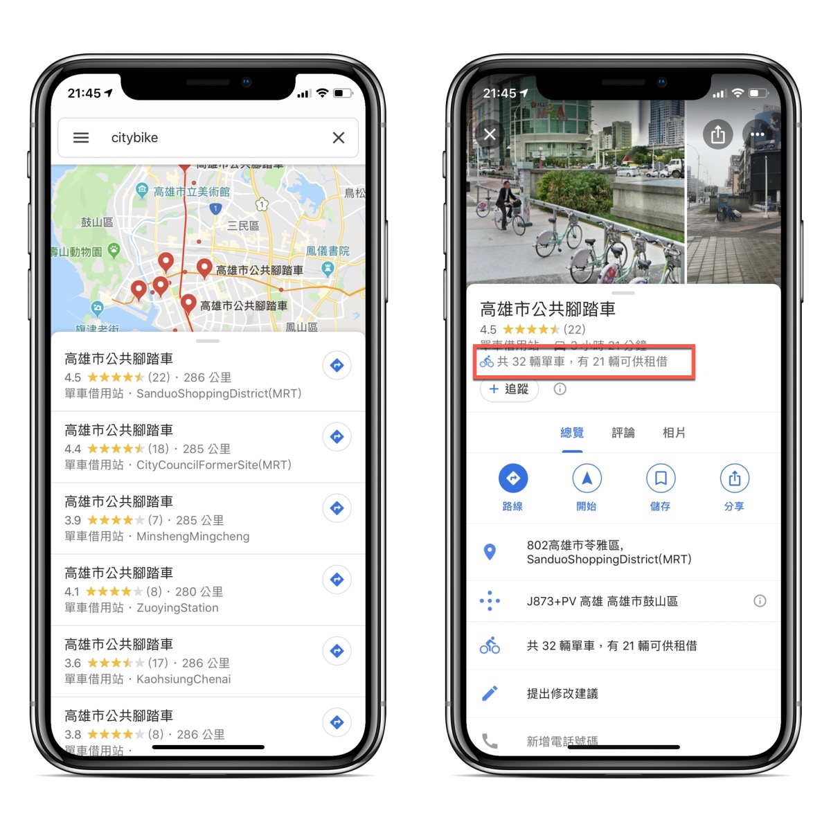 Google 地圖查詢 YouBike、CityBike 空車資訊