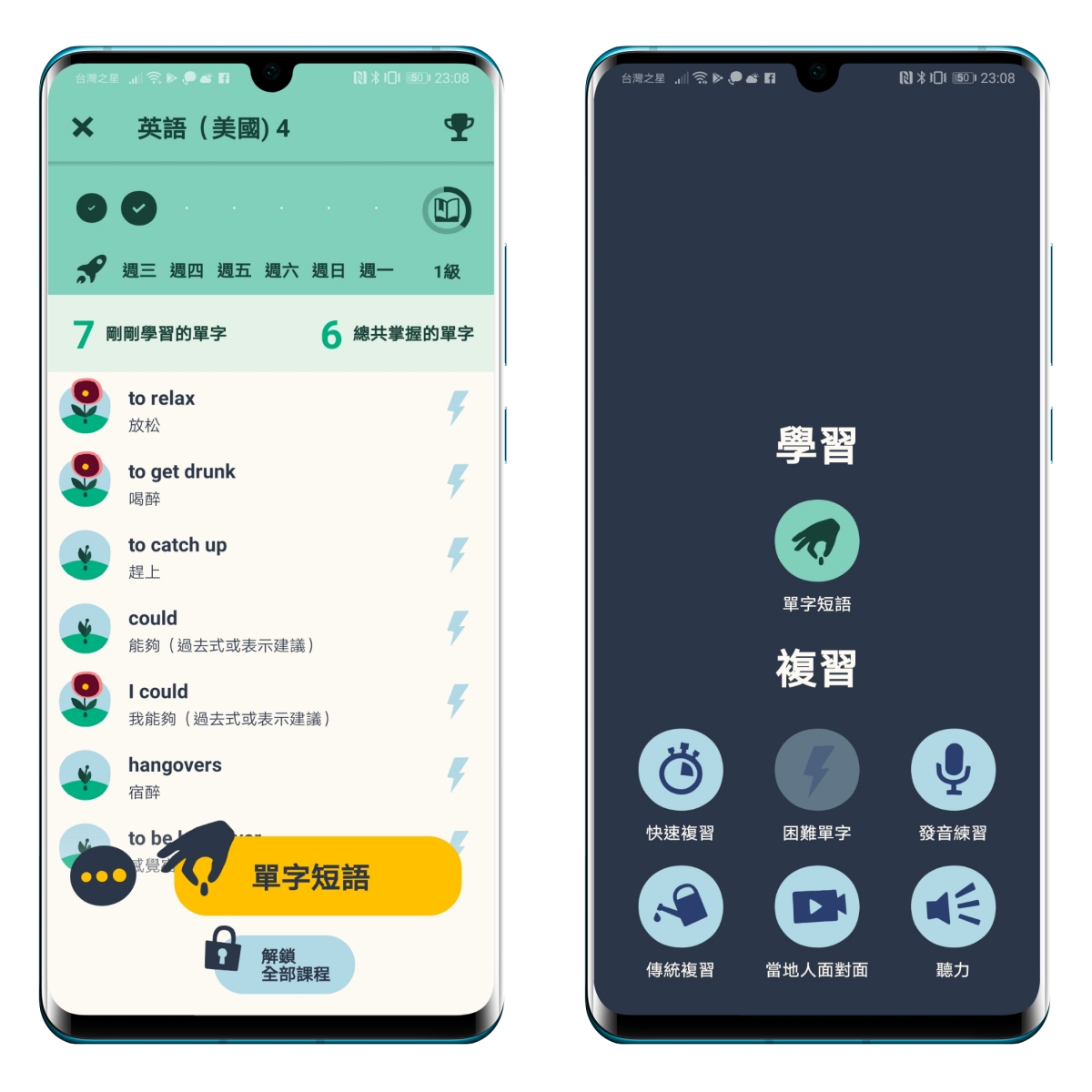 前面我就不多廢話,跟大多數語言 APP 一樣,會透過聽力、視覺等方式,讓你一步一步的記下單字,會不斷用不同方式重複,所以要記不住也有點難。