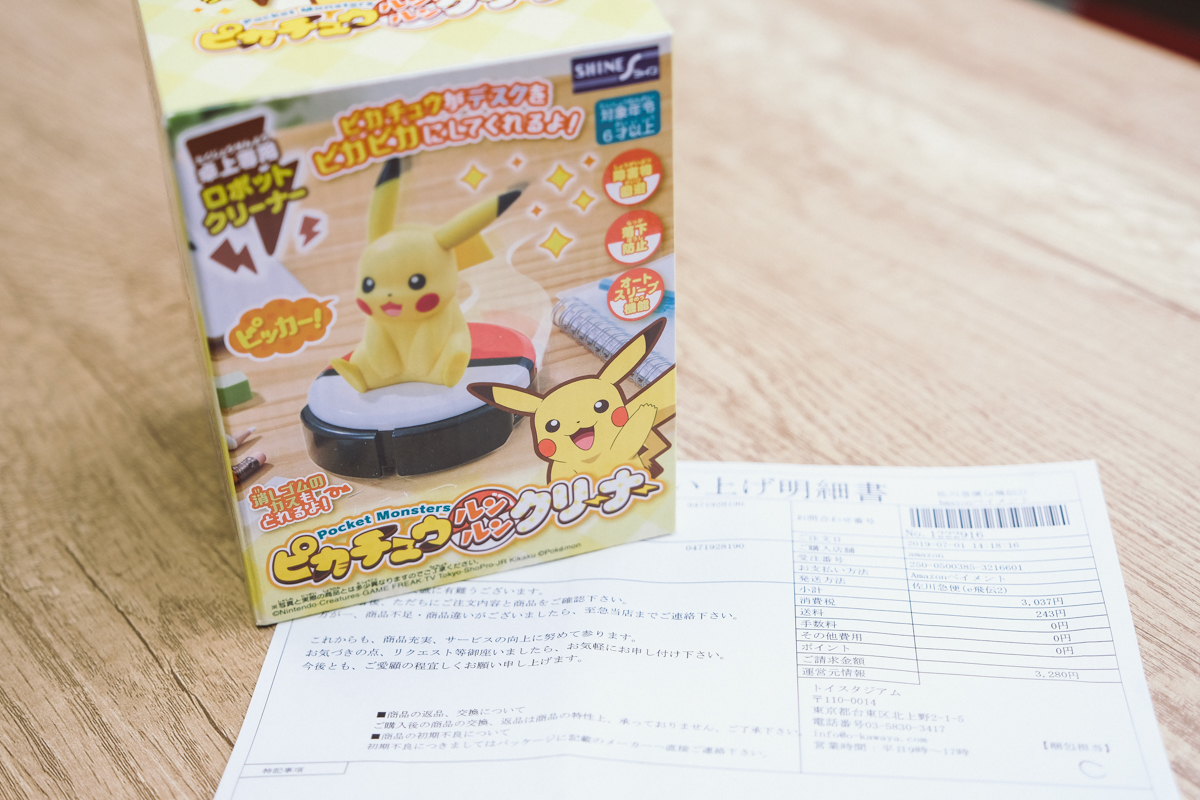 皮卡丘桌上型掃地機器人大概是約莫一個多月前注意到的產品,非常的可愛然後不太實用,不知道為啥我就很中二的下單了一台回來玩,我之前下單的時候還在預購中,沒有可以直送台灣,現在日本 AMAZON 上已經可以直送台灣了,含運大概 3400 日幣左右,雖然名為「桌上型」掃地機器人,但其實能掃起來的東西只有像是橡皮擦屑這種小小的灰塵,頭髮還要看長度,不過雖然很小一台但還是有設計碰撞感應跟防跌落機制,不過沖著皮卡丘可以很可愛的在桌上跑來跑去,好像工作之餘也是頗療癒的啊。