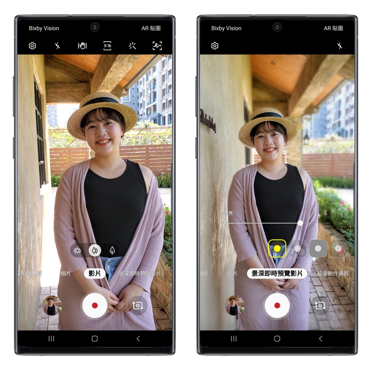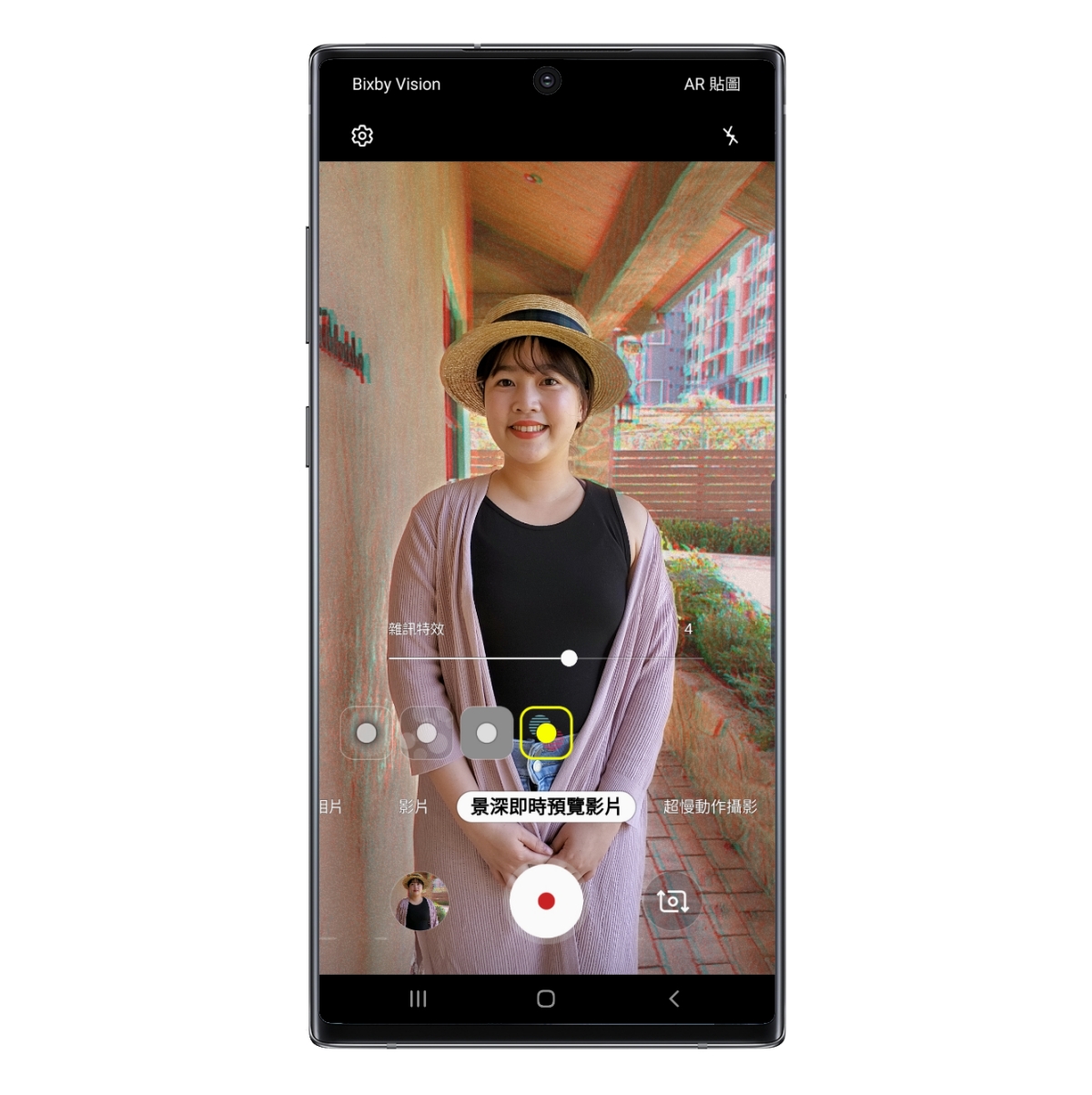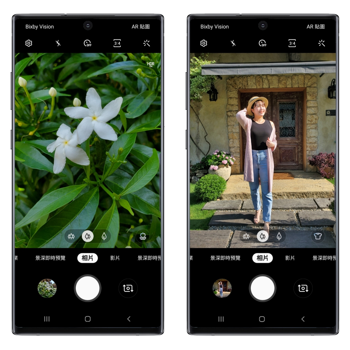 這次在 Galaxy Note 系列上的相機功能,大致上延續了先前的功能,除了各種拍攝模式之外,有趣的 AR 貼圖、實用的 Bixby Vision 等,智慧場景辨識能區分的項目也更加多元(像是衣物也獨立了一個類別)。