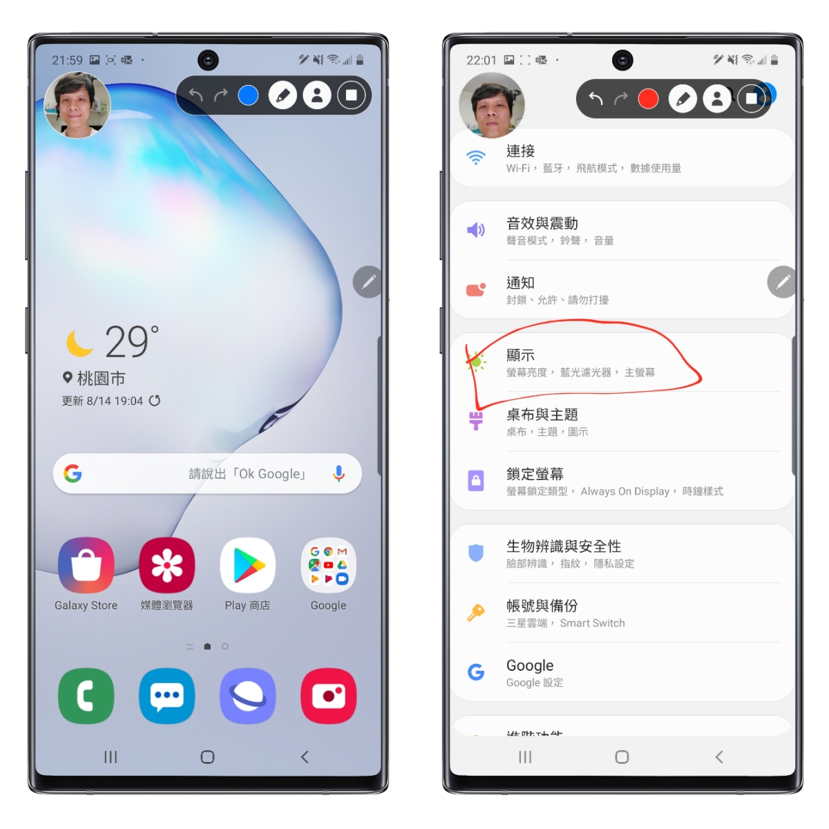 原本就內建的螢幕錄影功能也藉由 S Pen 變的更加強大,除了在邊錄影的期間可以同步錄製自己的畫面外,也能使用 S Pen 在錄影的同時邊進行繪製、註記,用來錄製操作教學影片超好用。