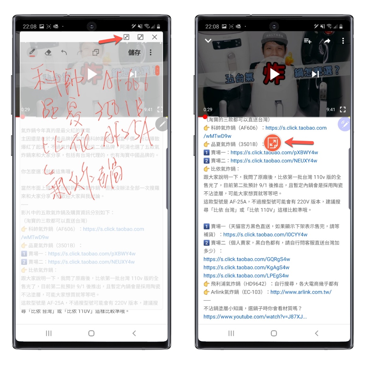 這時就可以邊看著內容邊抄筆記,不用再切來切去,也不需要使用雙視窗,當你該畫面寫的差不多的時候,想要滑去別的地方或切換頁面等,也只要按一下縮小視窗,筆記就會變成一個懸浮氣泡,就可以繼續操作畫面,如果要切換回筆記也只要再按一下氣泡就可以再繼續寫。