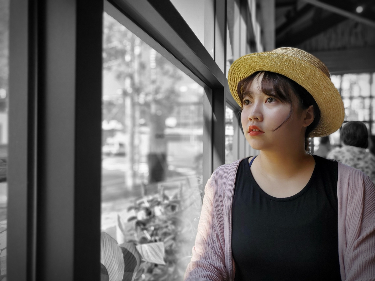 景深即時預覽 - 抽色,僅保留人像主體的色彩,其他皆為黑白。