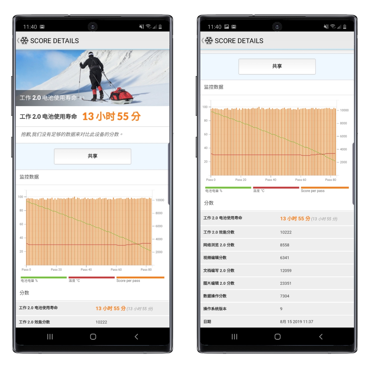透過 PCMark 的電力續航測試獲得 13 小時 55 分,足以使用一整天的時間,再加上全新的閃電快充 2.0,其實隨時快沒電充個 20 分鐘就可以再戰好幾小時了。