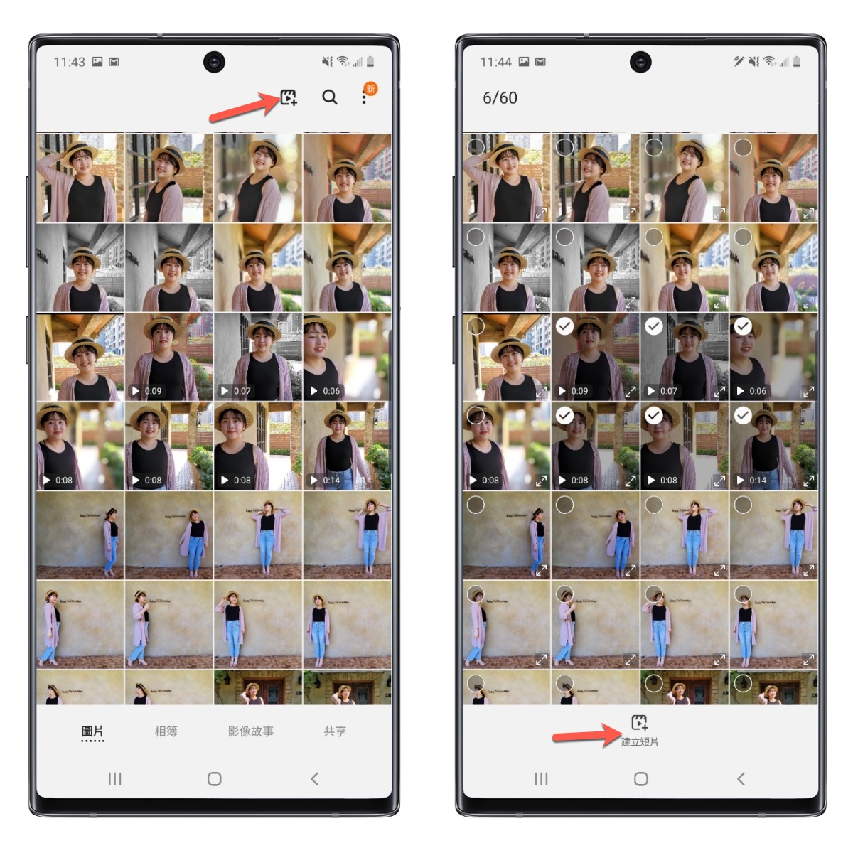 內建簡易操作且實用的影片編輯功能,在相片瀏覽器中,右上角可以看到有一個影片圖示,點擊後就可以選取要加入編輯的影片。