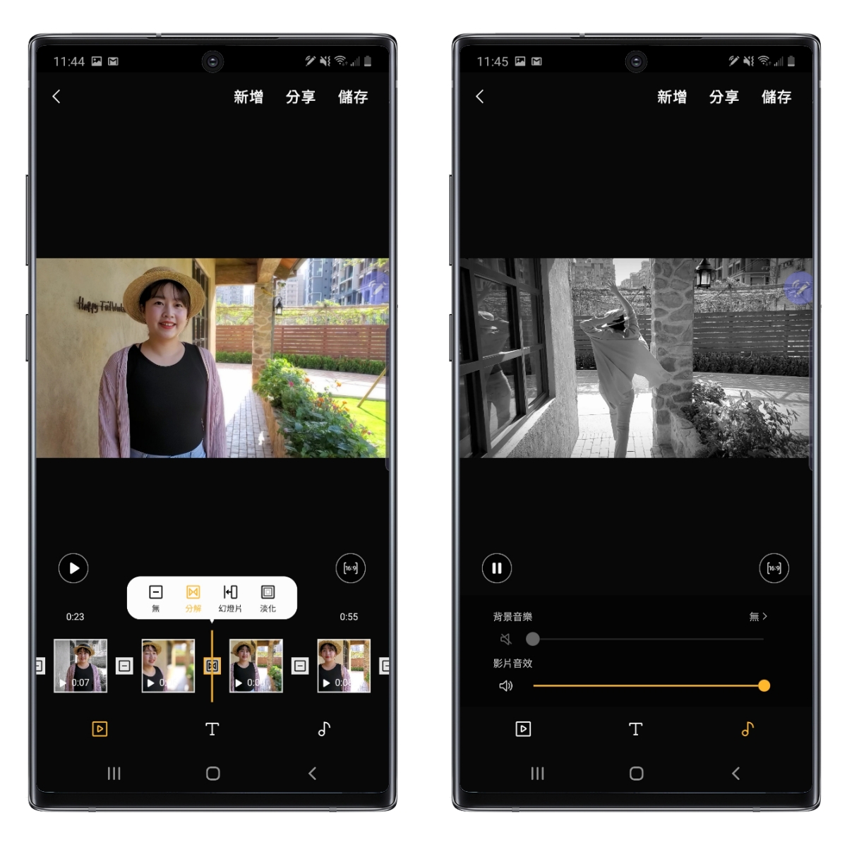 就可以透過內建的編輯功能快速進行剪輯,像是調整片段、設定轉場效果、基本文字以及背景音樂等效果,隨時錄製快速的剪輯完成分享到社群。