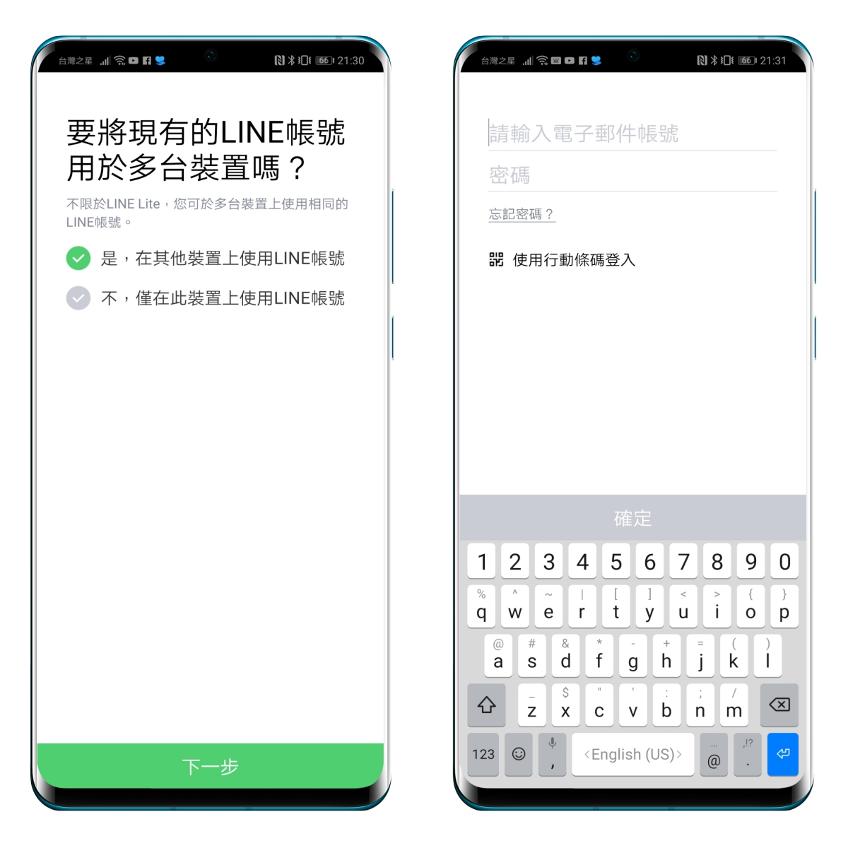 在登入時要選擇「是,在其他裝置上使用 LINE 帳號」,然後進行登入,這麼一來原本已經有使用 LINE 的手機並不會被登出,而是二支手機並行使用。