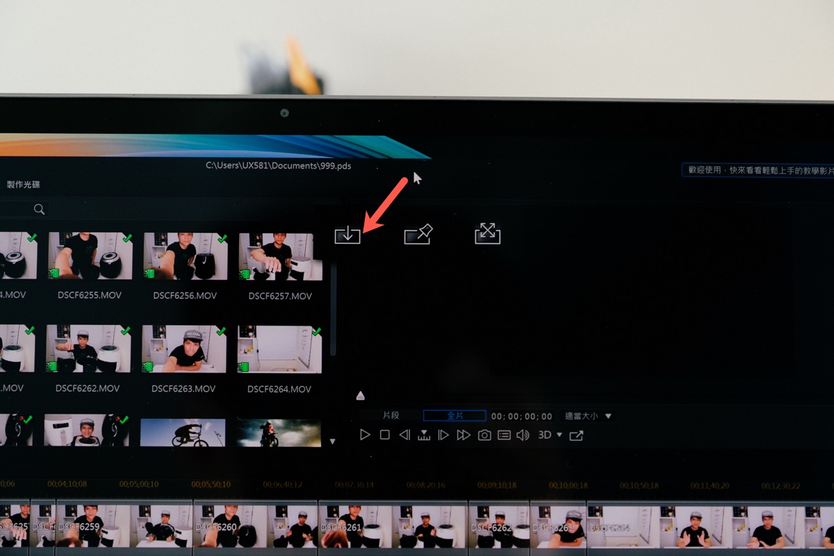 而第三個圖示,只要將應用程式拖曳進去,就會放大充滿整個雙螢幕,這個其實很好用,以威力導演來說,當我將他放大至雙螢幕時,下方會是編輯區,上方為預覽區及素材檔案區域,剪輯影片更加的方便。
