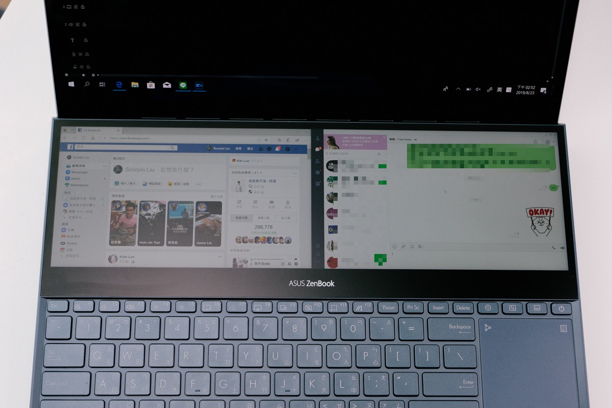 當我們了解視窗切分的捷徑後,就可以快速的將我們需要的應用程式排列整齊,像是邊剪輯影片,還可以邊回覆粉絲團、搜尋素材,然後又邊跟別人聊天(一心超級多用),當然,這除了是多視窗的運用外,要能夠讓這一切在多視窗下仍然能夠順暢運作,也是歸功於 ZenBook Pro Duo 的強大效能。