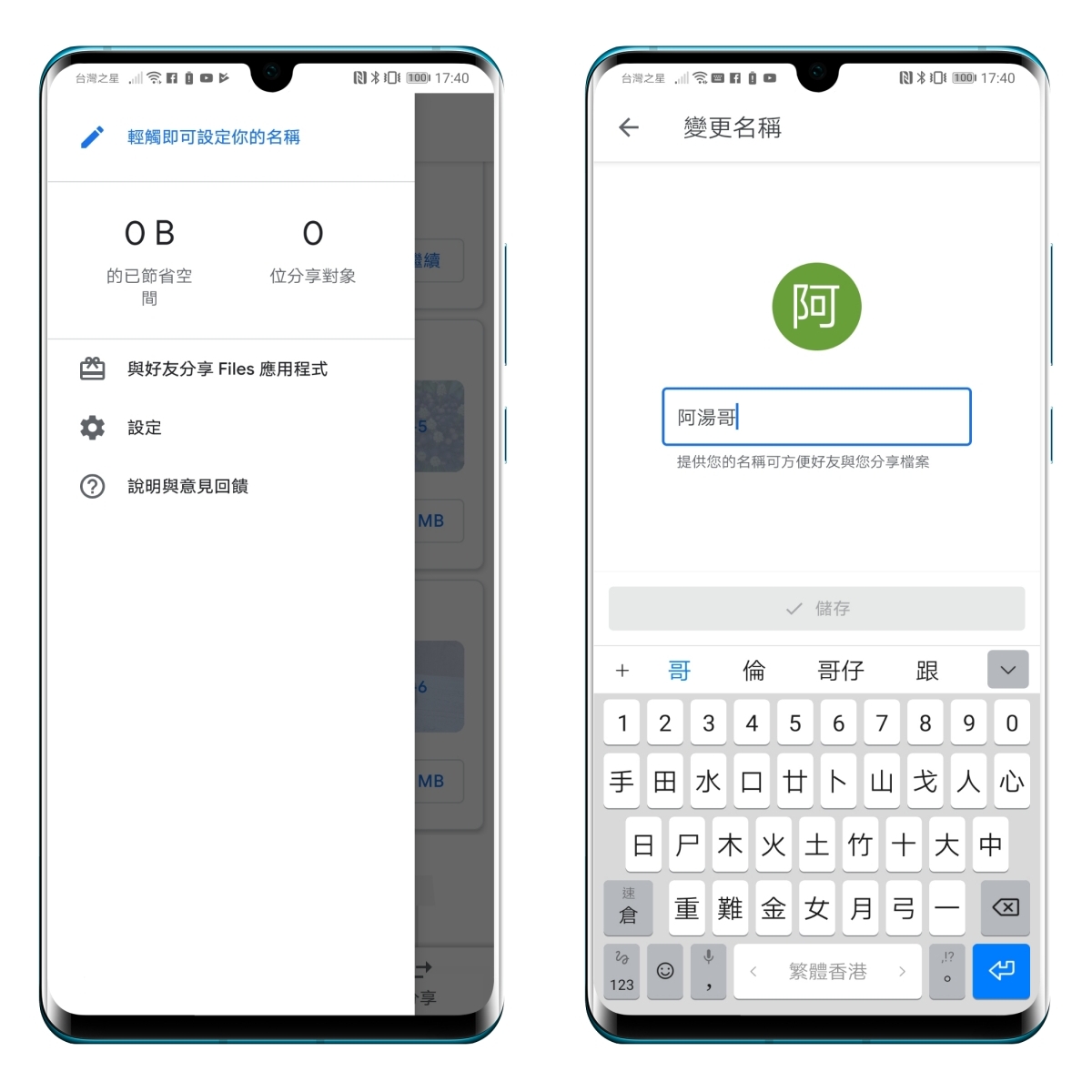 第一次使用,不論你是傳送端或接收端,都可以打開選單裡編輯自己的名稱,以便可以辨識是和誰連線,才不會有人半路殺出程咬金亂了套。