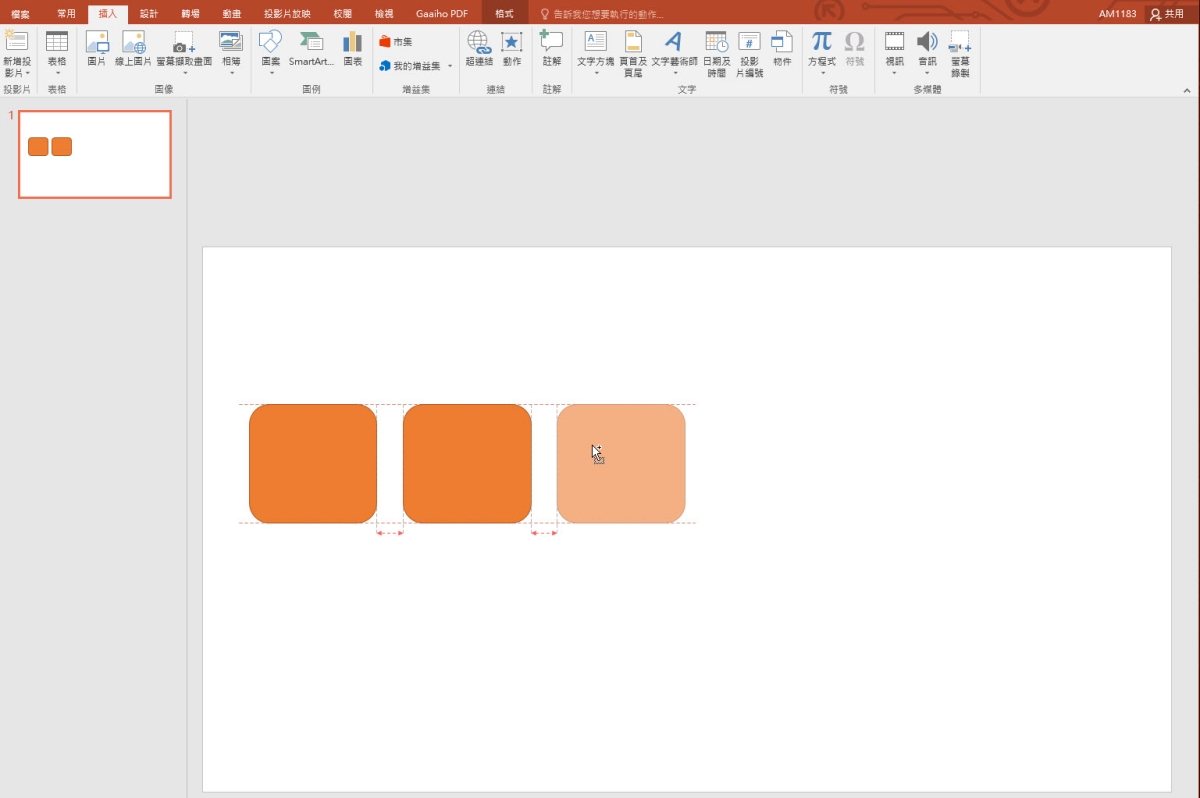以 PowerPoint 來說,其實只要拖動圖案就會有對齊線可以看,但如果你要插入的圖案很多,一個個拉其實很累,下面來教大家一個小技巧,讓你可以光速建立這些等距區塊。