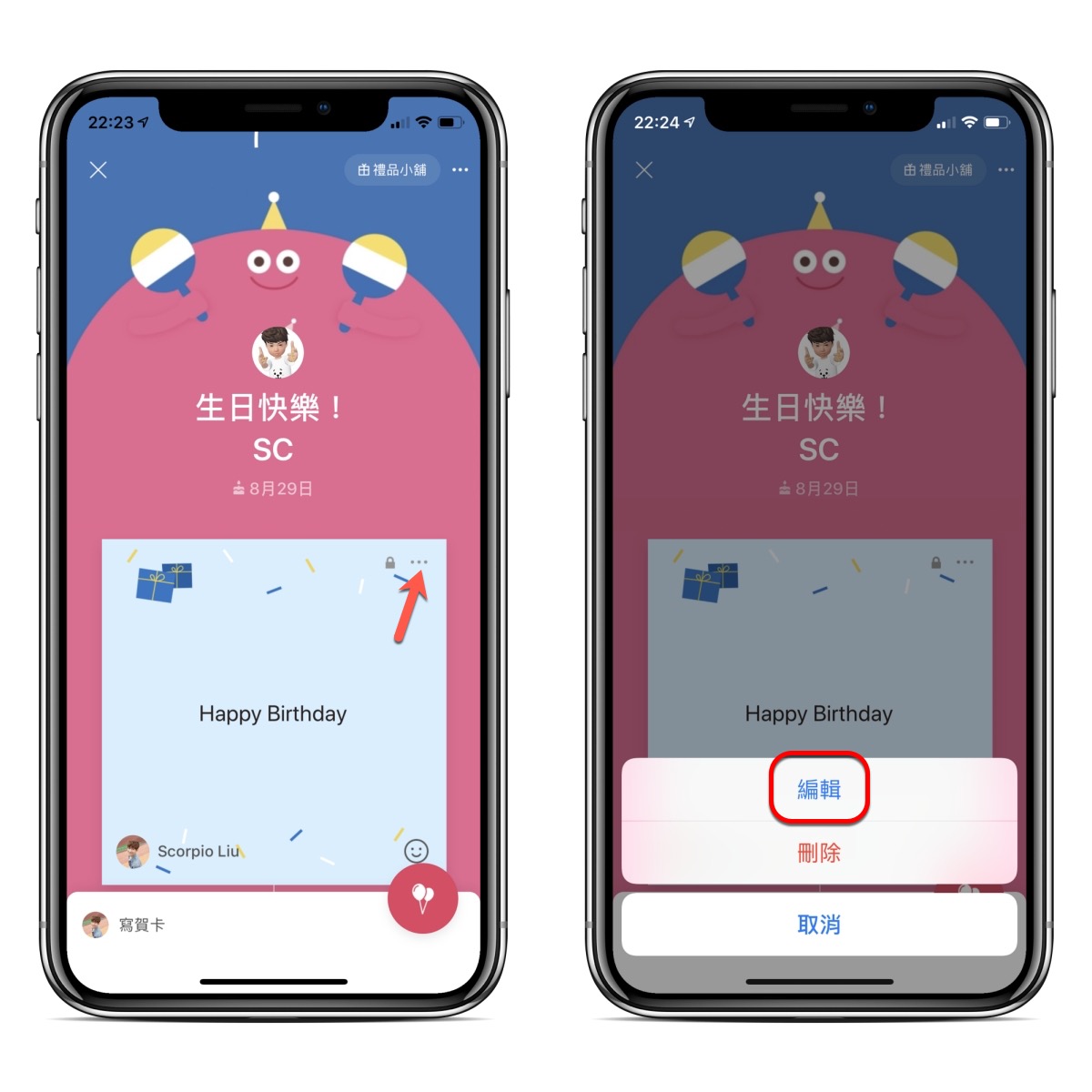 如果發現賀卡有錯字或是想要再補充點什麼內容,也沒有關係,隨時可以去貼文串點擊你寫的賀卡後再進行編輯。