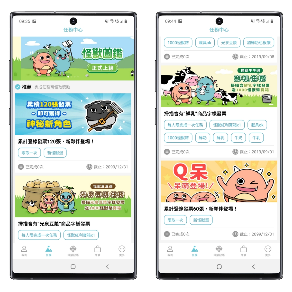 一般每張發票掃瞄會獲得 10 元怪獸幣,如果是掃瞄當日的發票是二倍,最近的任務活動中,累積 120 張發票時還可以兌換新角色(60 張也會獲得新角色),我想隨著開發會有愈來愈多怪獸加入吧。