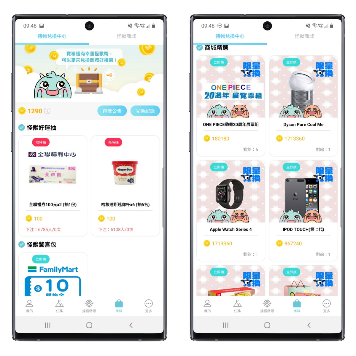 而掃瞄發票的第二個最大動力就是可以用怪獸幣兌換東西或是參與抽獎,可以兌換的東西除了折價卷、高價的家電、3C 產品外,也有一些容易換到的像是咖啡等,掃的愈多換的愈多。聽說已經有人成功換得吸塵器過,實在太強大了!