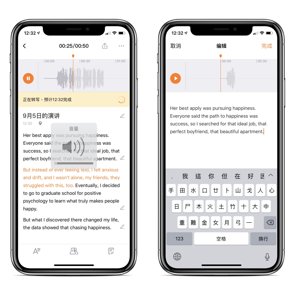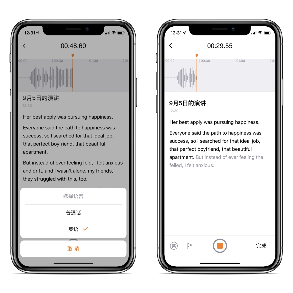 - 同時開啟 APP 進行錄音,同步轉譯文字