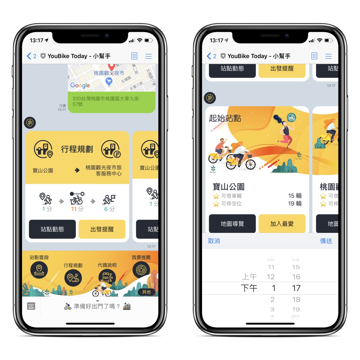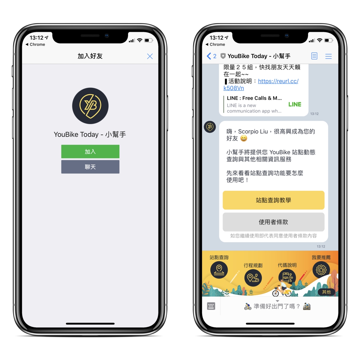 可以查詢 YouBike 站點的相關 APP 很多,就連 Google 地圖也可以(只是非全部站點都有提供車輛資訊),不過能少一個 APP 是少一個,現在只要透過 LINE 就可以查看 YouBike 站點資訊,還能規劃騎乘路徑,只要在 LINE 加入「YouBike Today - 小幫手」這個 LINE 機器人的頻道,就可以簡單的點擊幾下就完成查詢及路徑規劃,其中還可以將常用站點加入最愛,隨時召喚來使用。