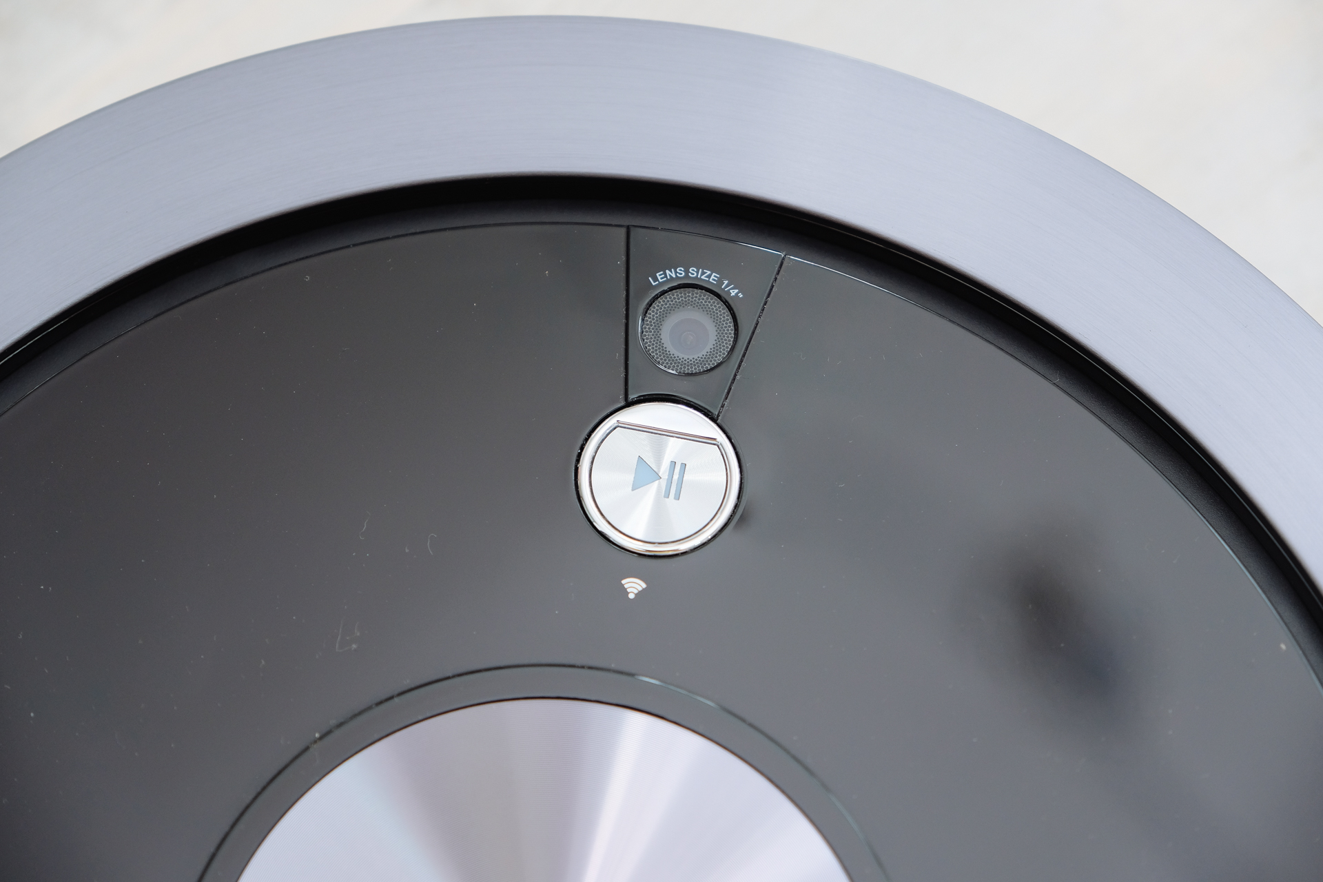 上方為開始/暫停清掃按鍵,在他的上方就是 360 度鏡頭,會在清掃時同時記錄上方天花板,就能即時判斷位置並規劃清掃區域、路徑等,讓清掃更加有效率。
