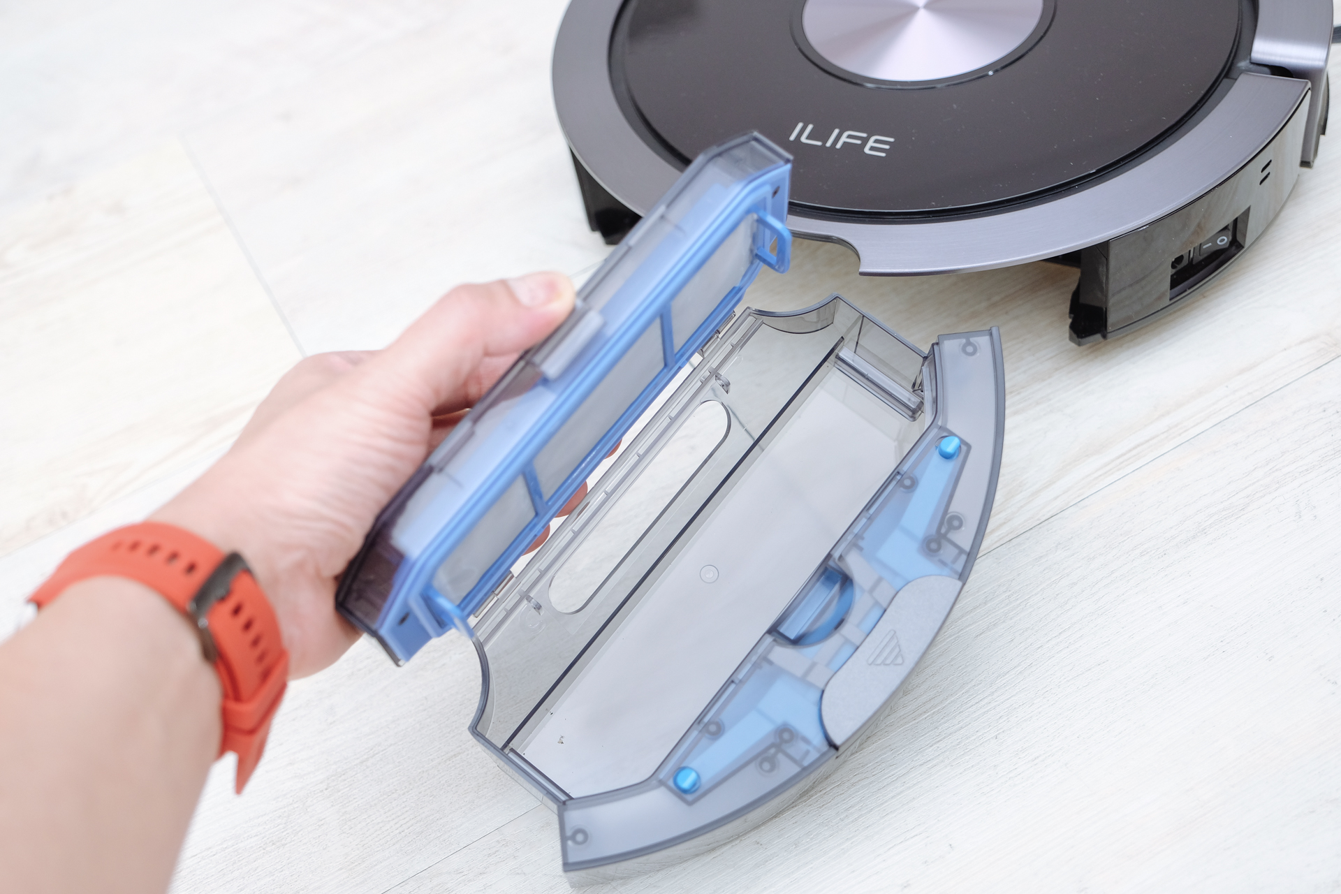 ILIFE A9s 掃地合一機器人有一個部份相當的特別,一般的掃拖合一機器人,普遍是同時裝上集塵盒及水箱,而 ILIFE A9s 將集塵盒跟水箱是分開的,一次使用一種,阿湯認為整合一起與分開都各有優缺點,我們往下先來看一下 ILIFE A9s 的各別使用設計。