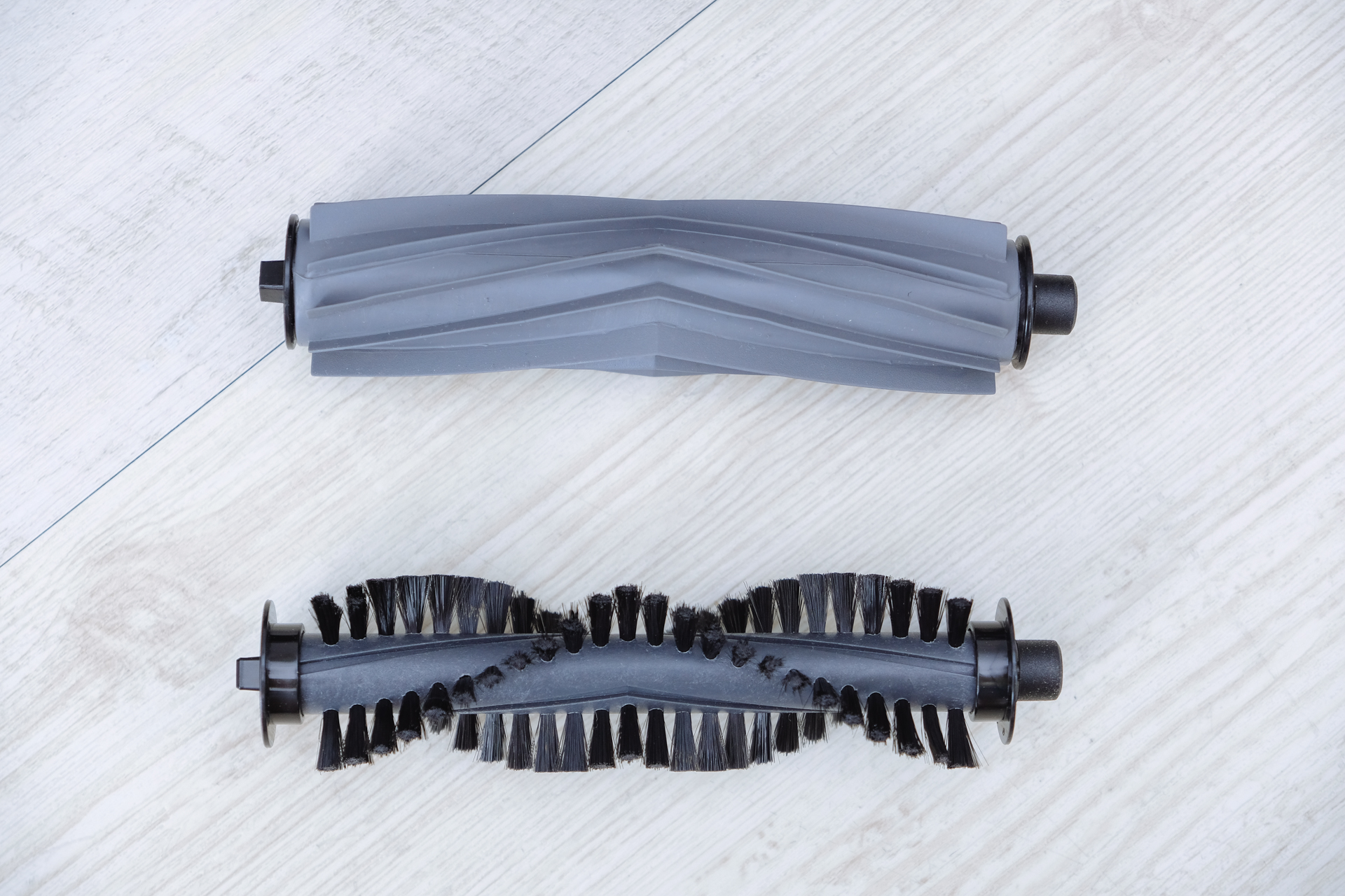 比較特別的是有提供二組滾刷,下圖的上方為橡膠刷,適用於硬質地板可防止毛髮纏繞,而下方的鬃毛刷適用於地毯清潔使用,可依照家中環境來選擇使用。