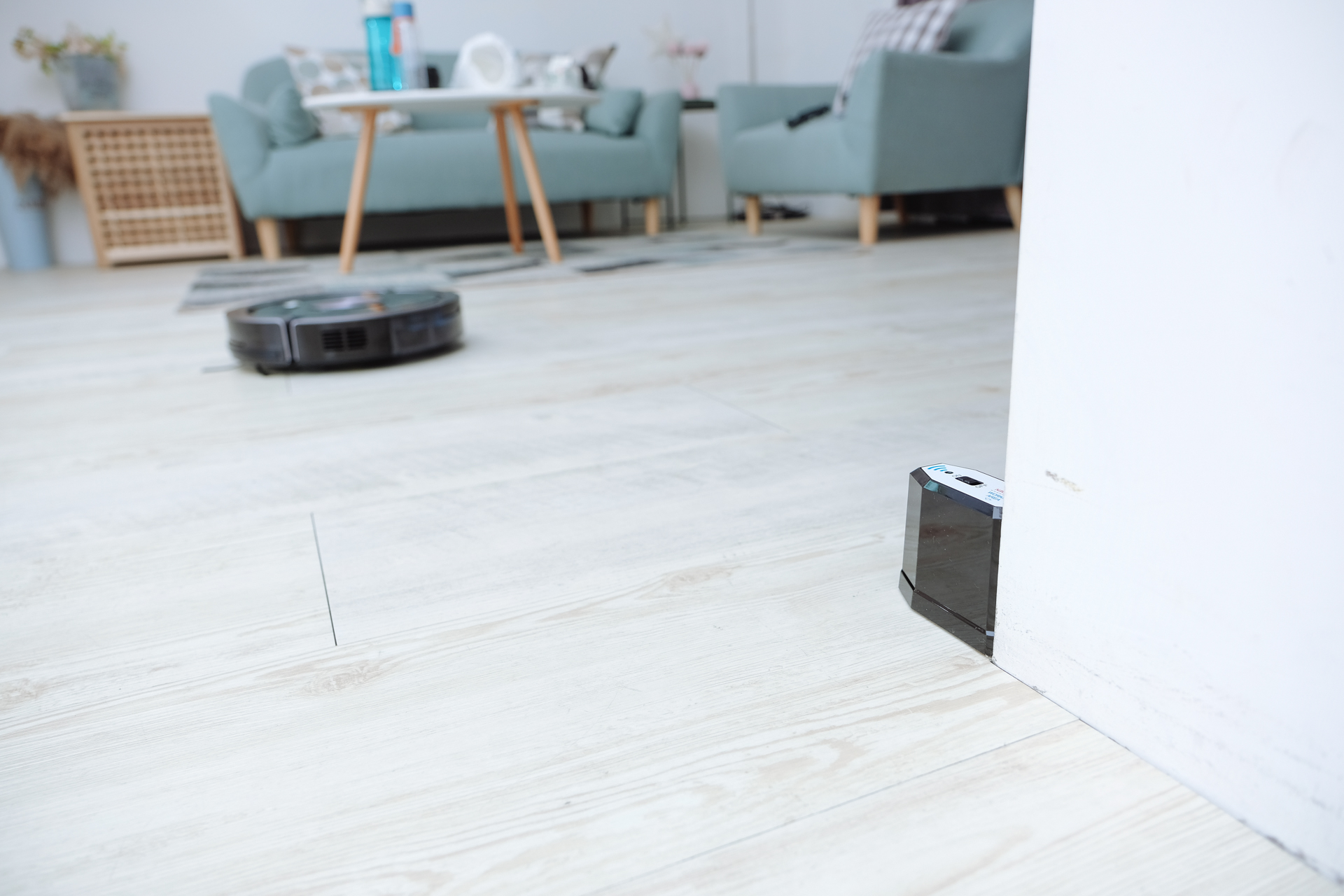 阿湯自己實測了遮斷約 3 公尺的虛擬牆,仍然很好的運作,掃地機完全沒有越過禁區,所以這個虛擬牆不一定只用在小範圍哦(約可遮斷 5~7 公尺左右的範圍),有別於一般的「磁條式」或「APP 繪製禁區」,ILIFE 的虛擬牆使用上非常的直覺簡單,不需做任何設定,放哪就擋哪,可以更加輕鬆上手使用。
