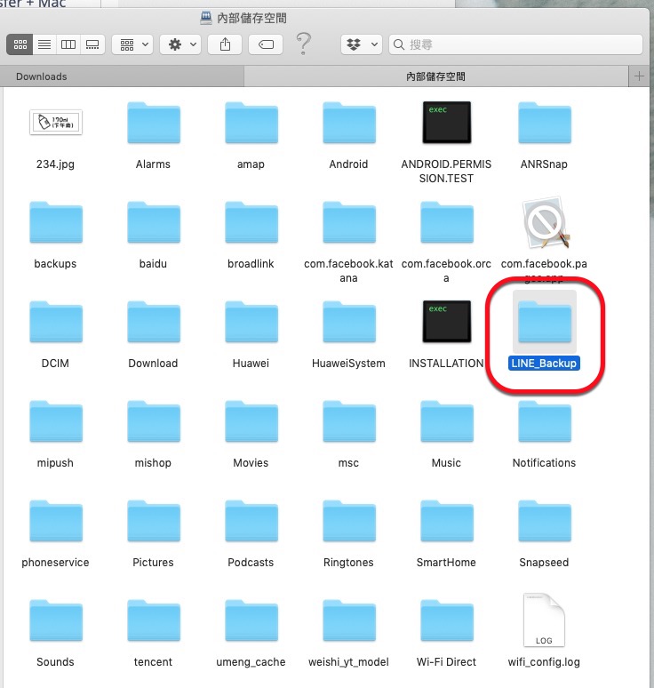 這個匯出的資料夾你會看起來很熟悉,跟我們前面轉移到 iPhone 的內容是一樣的,同樣的把 LINE_Backup 資料夾傳到 Android 手機裡。