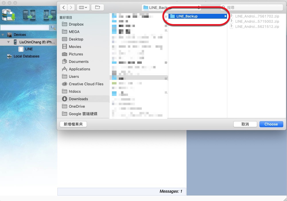 然後去選擇你前面從 Android 手機複製出來的 LINE_Backup 資料夾。