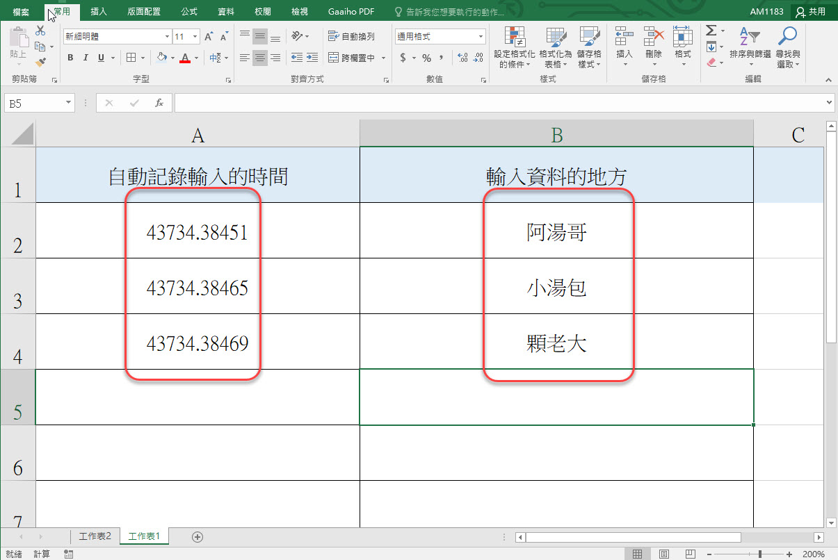 這就是我們今天要做的,在 B 欄輸入資料時, A 欄就會自動顯示輸入資料的時間。