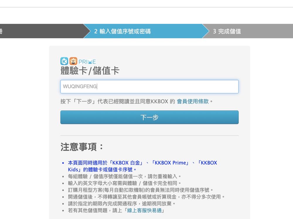 申請方式: Step 1. 上 KKBOX Prime 官網 後,選擇「輸入兌換序號」