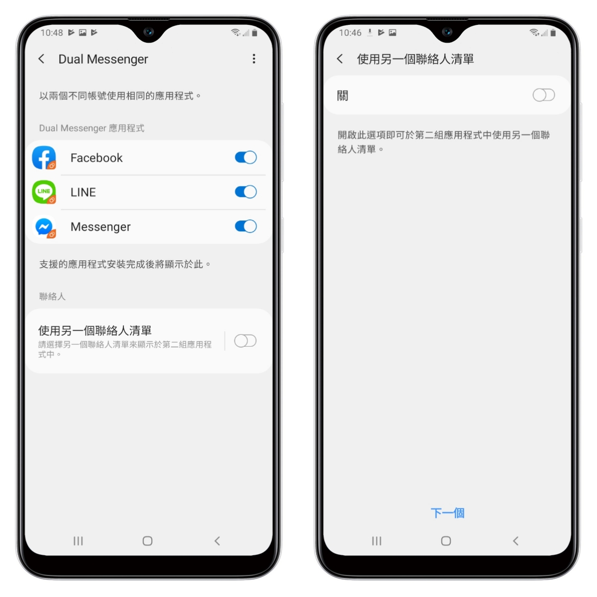 開啟後,如果你有第二聯絡人清單要使用的話,記得可以打開,這麼一來不只是雙帳號,連絡人也能分開各別使用。