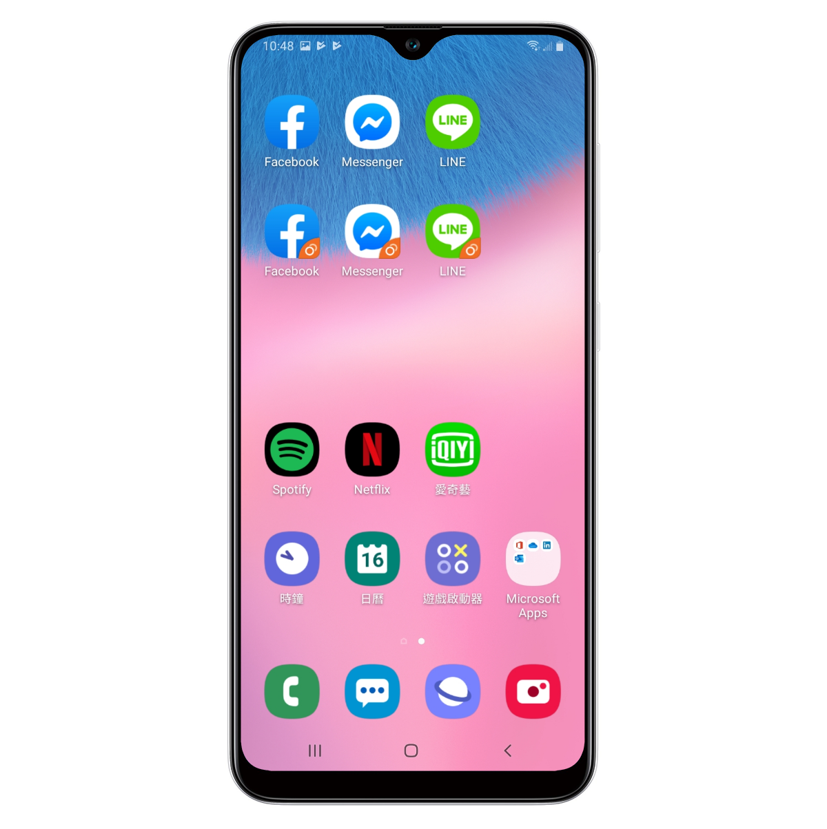 當你啟用 Dual Messenger 之後,就會像這樣,副本 APP 的圖示右下角就會多一個雙開的小圖示,代表是第二副本,直接執行照正常登入方式使用就可以囉。