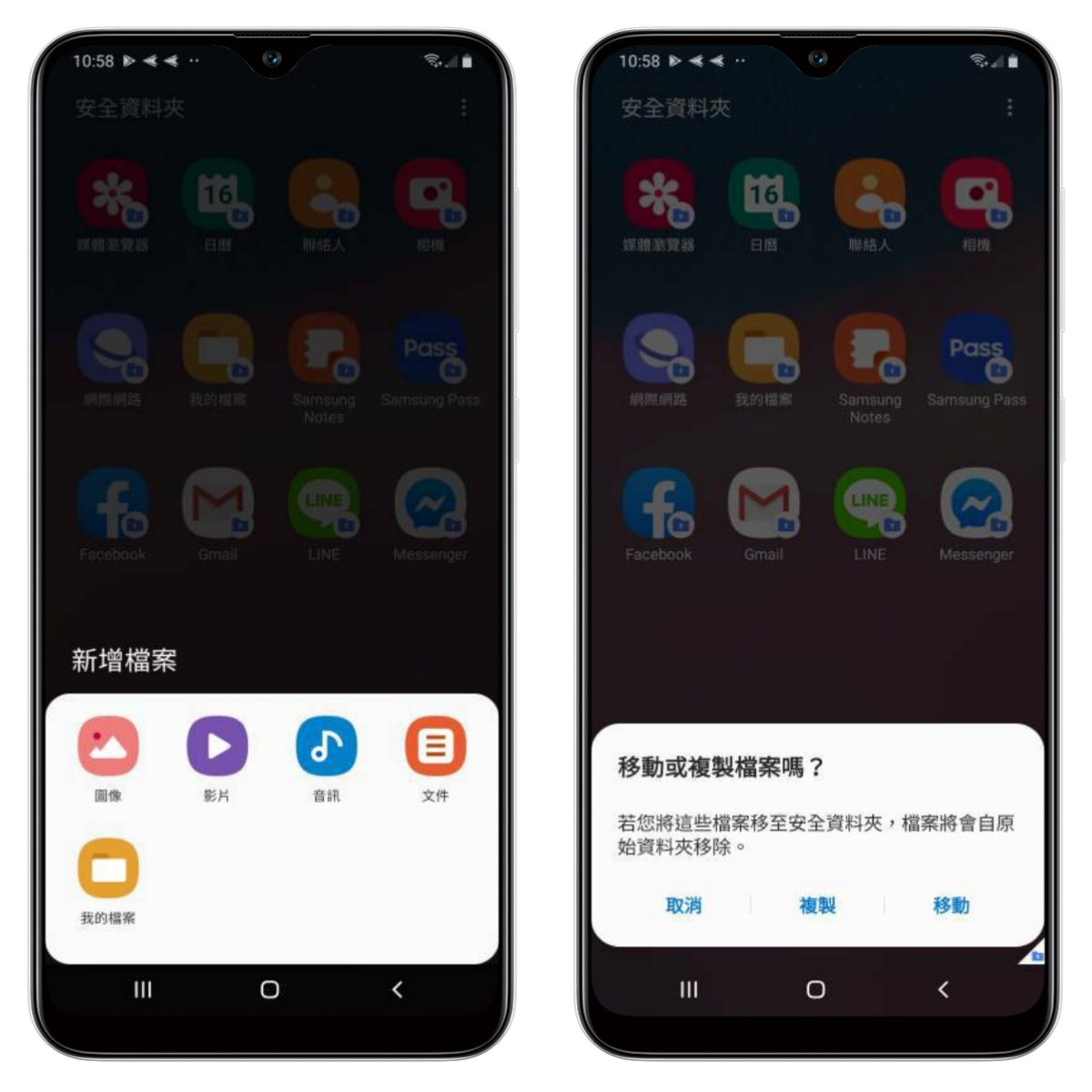 除了應用程式外,也能選擇將檔案、照片、影片等移動或是複製到安全資料夾。