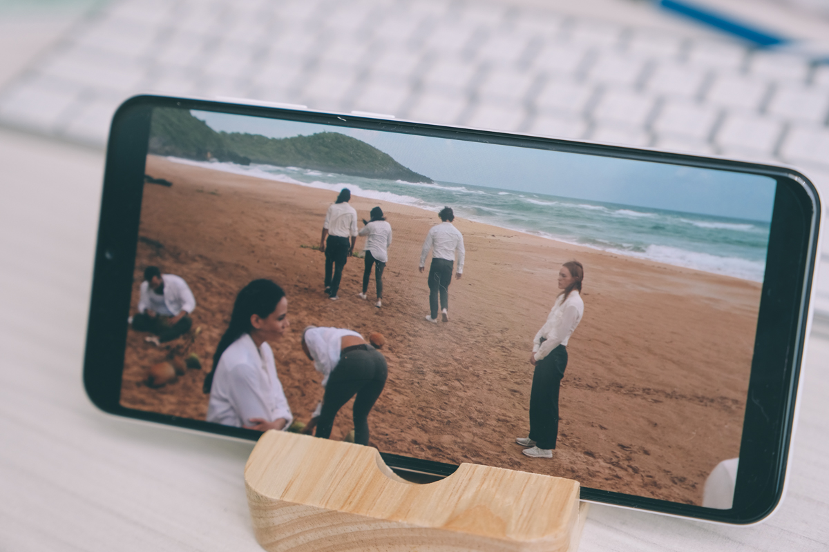 看影片(畫面使用 Netflix 播放)時同樣不會被前置鏡頭遮擋。